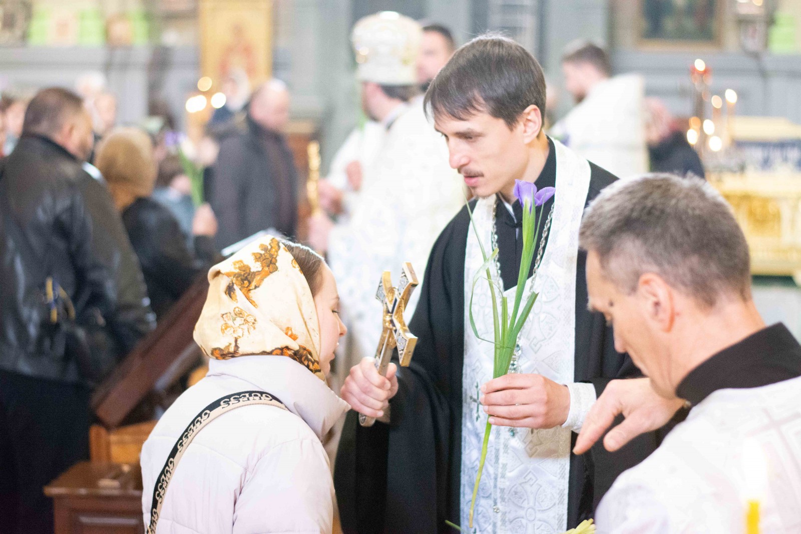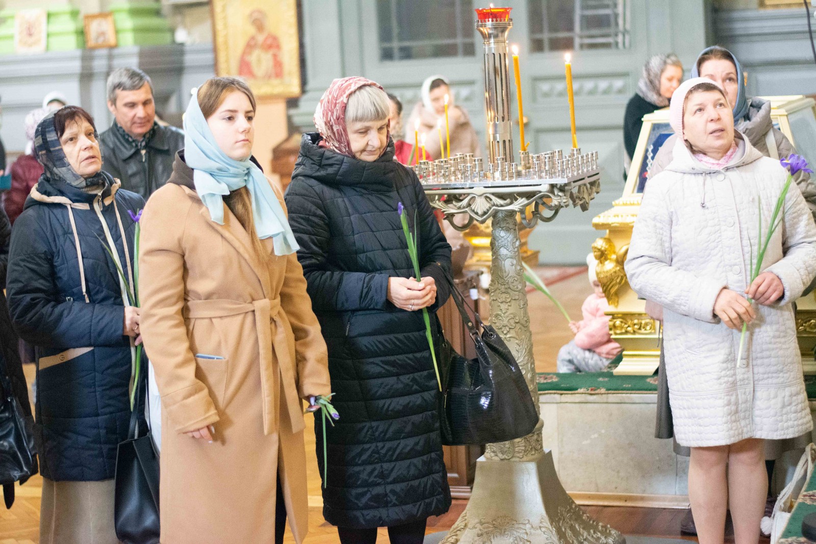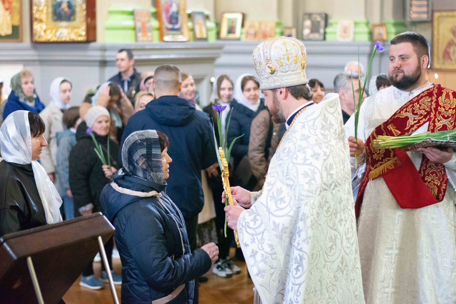 Після закінчення недільного богослужіння від імені митрополита Євлогія та братії храму благочинний привітав парафіянок Троїцького собору на честь святкування пам'яті святих жон-мироносиць. За доброю традицією, всім сестрам у Христі були подаровані весняні квіти.